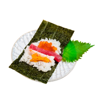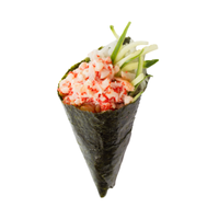 Cone-shaped sushi wrapped in seaweed, filled with rice, fish, and vegetables, designed to be eaten by hand immediately for freshness, crispness, and casual dining experience in sushi bars and homes.