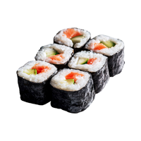 Rolled sushi prepared by wrapping rice and fillings in seaweed, then slicing into bite-sized pieces, offering balanced flavors of rice, vegetables, and seafood.