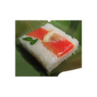 Sushi prepared or served using bamboo leaves or mats, adding subtle aroma and traditional presentation while supporting rolling and shaping methods used in classic sushi preparation and regional styles historically.