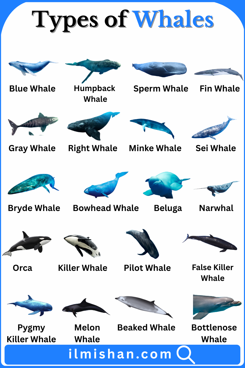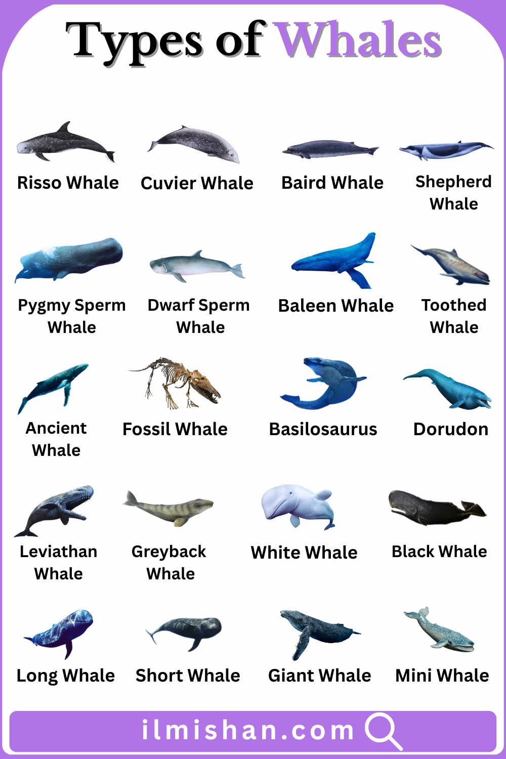 Whales are the largest marine animals living in oceans around the world. They are gentle, intelligent mammals that breathe air and spend most of their lives in water. Different types of whales vary in size, shape, and behavior, from massive baleen whales to fast-moving toothed whales. Each species has unique features and feeding habits. In this article, you will learn about different types of whales with their names and pictures, explained in easy and clear language for simple understanding.