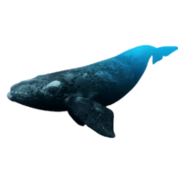 A slow-moving baleen whale with a large head and rough skin patches. Right whales were heavily hunted and are now endangered.
