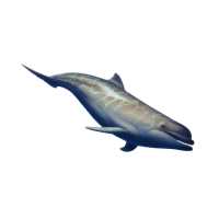 A beaked whale with a large forehead and small beak. Bottlenose whales dive very deep and live mostly in cold, deep oceans.